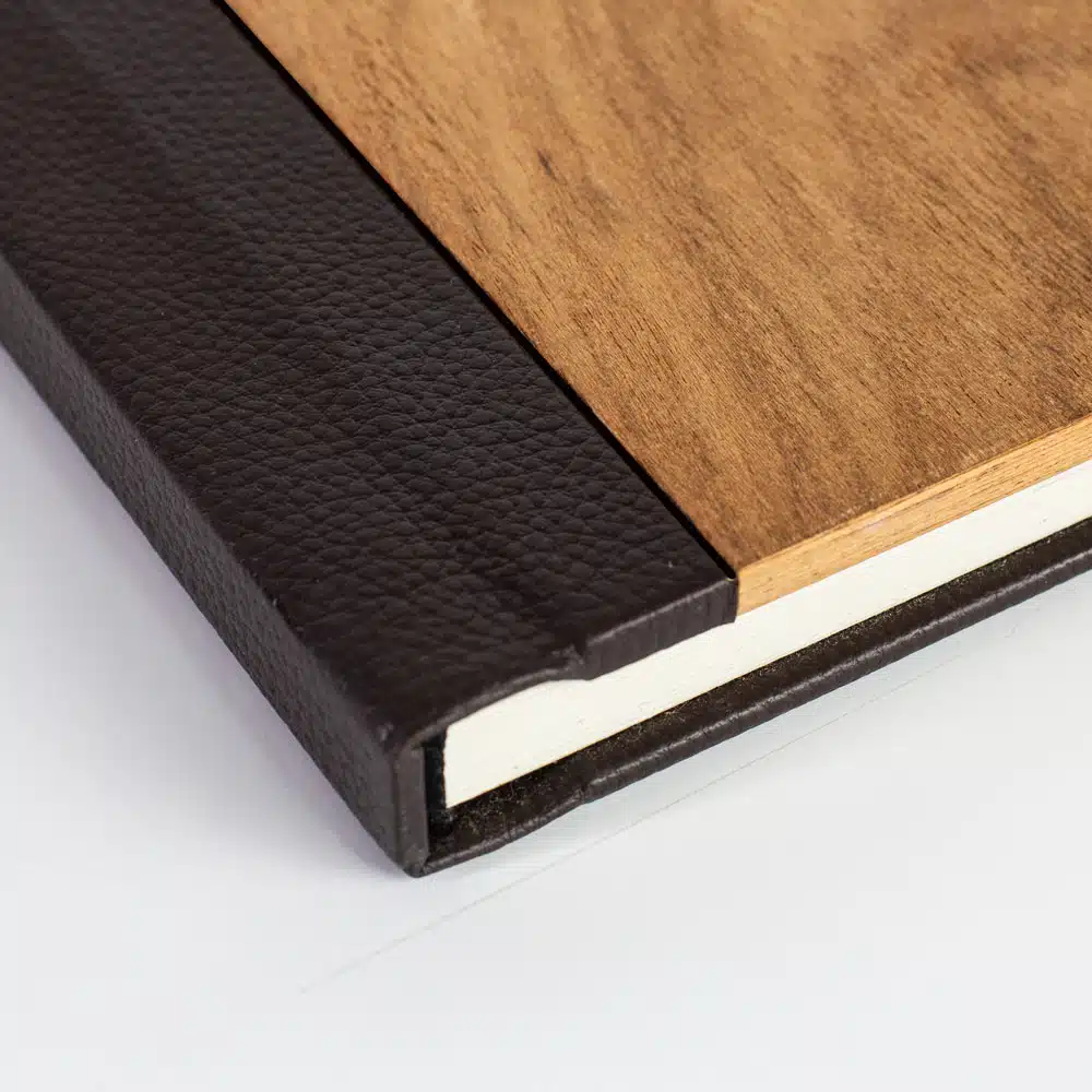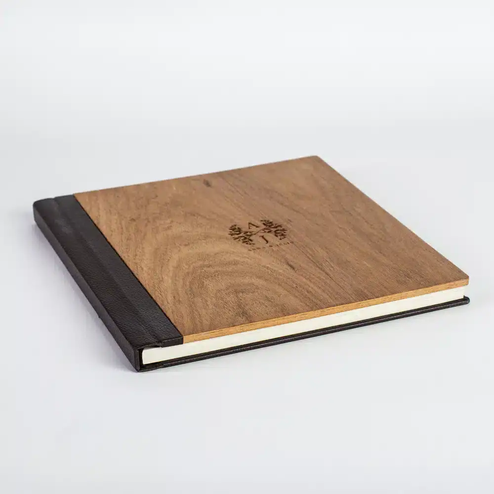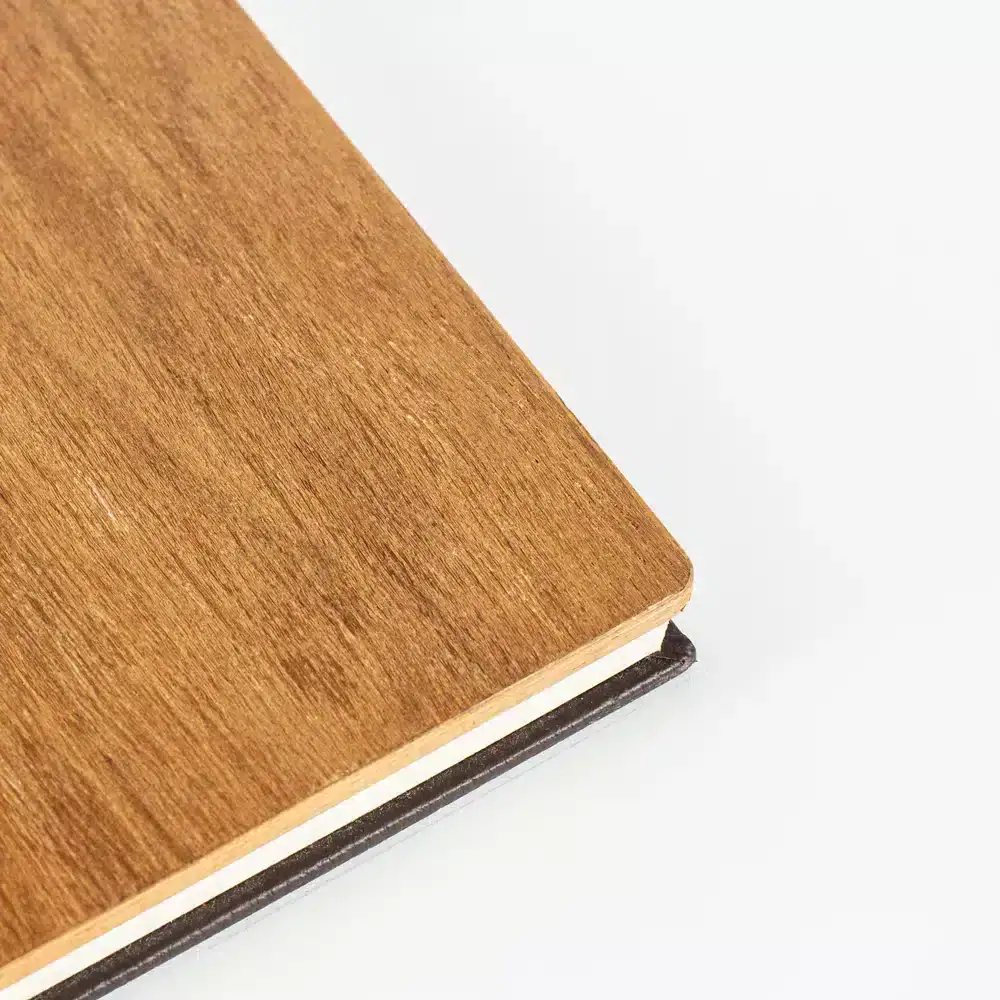 Capa em folha de madeira freijó natural, com dorso e verso revestido